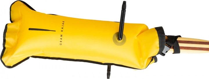 Paddlefloat für Grönlandpaddel. Die spezielle Bauform ist auf die langen, schmalen Blätter der Grönlandpaddel abgestimmt.