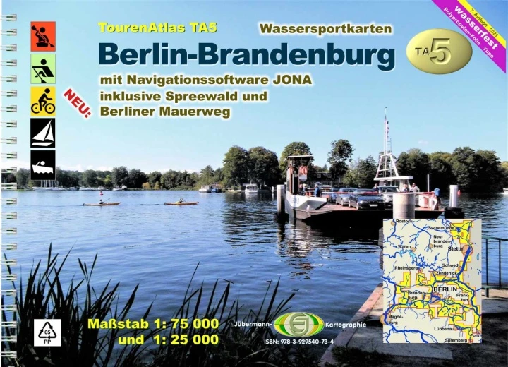 Berlin-Brandenburg: Spiralbindung, 29,3 x 21 cm (A4 Querformat), 96 Seiten, 77 Karten 1:75 000, inkl. Spreewald- und Berlinkarten 1:25.000, gedruckt auf wasserfester Polypropylen Folie (SuperYupo®). Inkl. Navigations-Software JONA (Download des Programmes, Freischaltcode im Atlas).