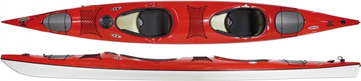 Leichter klassischer Wanderzweier in laminierter Ausführung mit zwei Abschottungen (48 + 128 l). Gute Anfangsstabilität durch den flachen Boden. Ein etwas längeres Unterschiff im Heckbereich sichert den guten Geradeauslauf, was in gleichem Zug die Geschwindigkeit optimiert. Die DeckBox vor der vorderen Luke bietet schnellen Zugriff auf wichtige Kleinigkeiten.